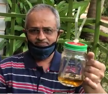 Suck air from the straw hanging above the liquid layer by shallow breaths for over 30 seconds. The outside air will enter from the ‘other’ straw placed below the level of beverage alcohol and this will be evident by bubbling of the liquid. The alcohol-laced air, and not alcohol per se, will be breathed in (inhalation) through the mouth.